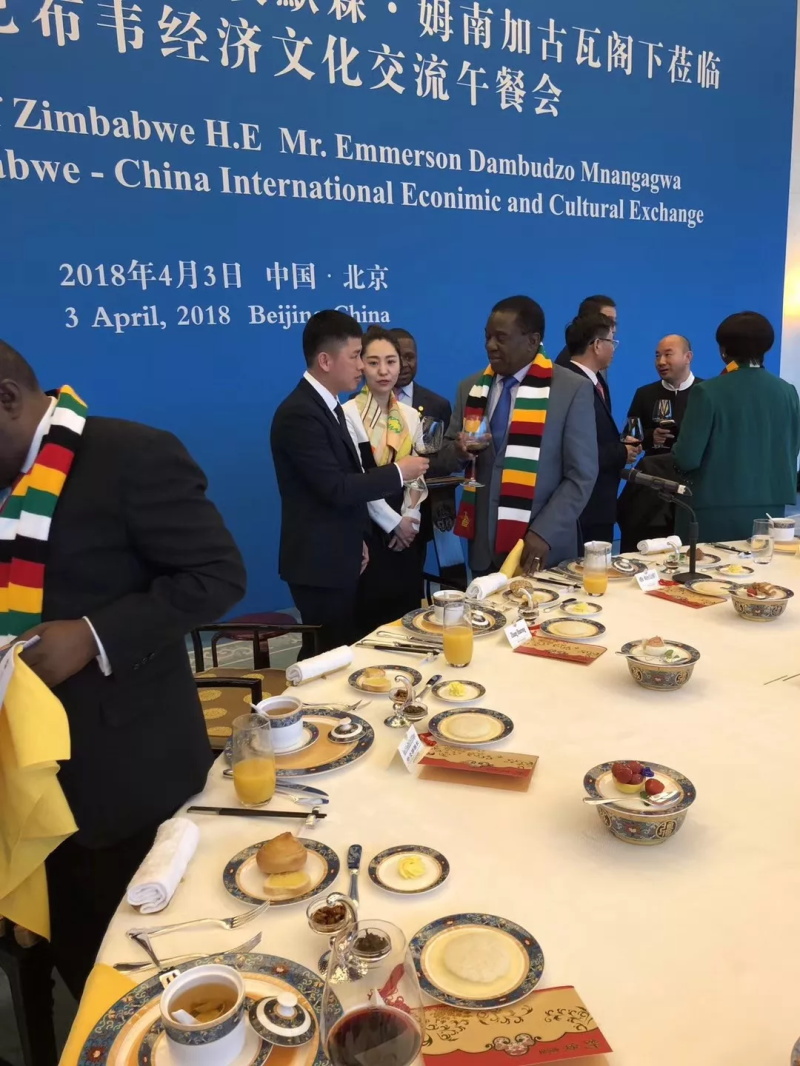 會議后,薛錦山董事長榮幸受邀出席與津巴布韋總統(tǒng)及津方十大內(nèi)閣部長共進午餐私宴,宴會上薛錦山董事長與總統(tǒng)閣下就在津投資政策上進一步深入交流。