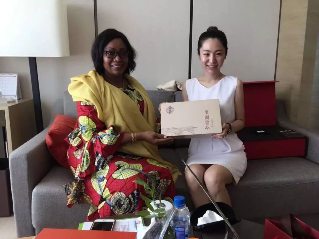 當(dāng)天晚上,茗唐中式中式茶【皇圖密令】系列,榮幸得到幾內(nèi)亞總統(tǒng)第一夫人孔戴·杰內(nèi)·卡巴DJENE KABA CONDE喜愛(ài)與認(rèn)可。幾內(nèi)亞是第一個(gè)同新中國(guó)建交的撒哈拉以南非洲國(guó)家,幾中傳統(tǒng)友好,明年將迎來(lái)建交60周年,相信兩國(guó)傳統(tǒng)友誼即將轉(zhuǎn)化出更多合作成果。