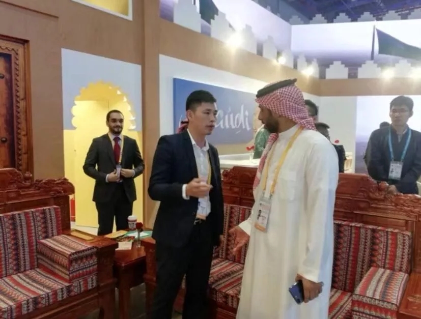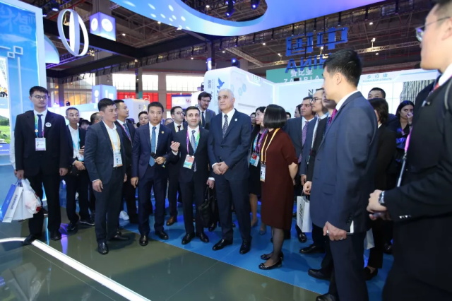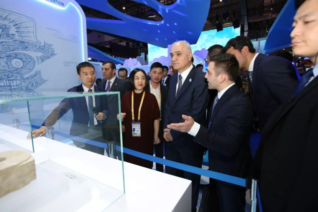 11月6日薛錦山受邀隨同阿塞拜疆副總理穆斯塔法耶夫參觀等國家重要領導共同參觀國家館,以進博會為契機擴寬中阿貿(mào)易之路。