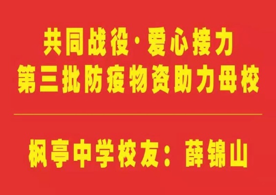 聚沙成塔,滴水涌泉,作為楓亭中學(xué)校友薛錦山感恩母校培育,共同抗疫,愛心接力,于9月19日捐贈(zèng)第三批抗疫物資助力母??挂?。