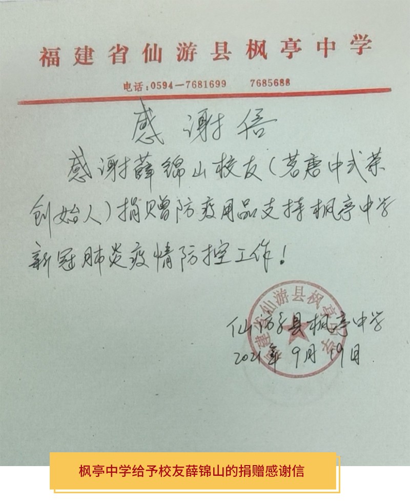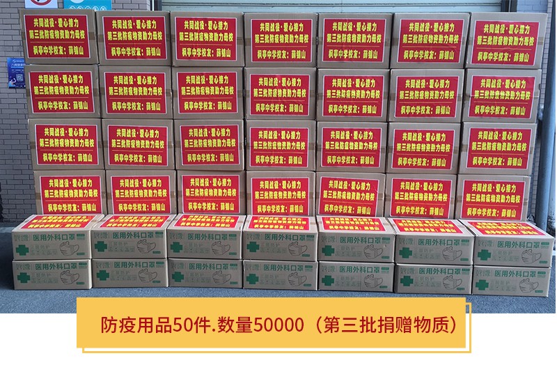 聚沙成塔,滴水涌泉,作為楓亭中學(xué)校友薛錦山感恩母校培育,共同抗疫,愛心接力,于9月19日捐贈(zèng)第三批抗疫物資助力母??挂摺?/span>