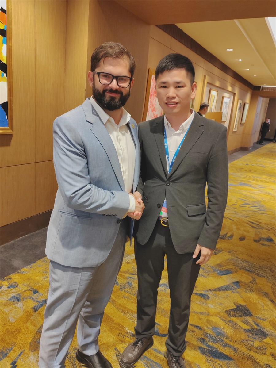 薛錦山與智利總統(tǒng)博里奇閣下合影留念