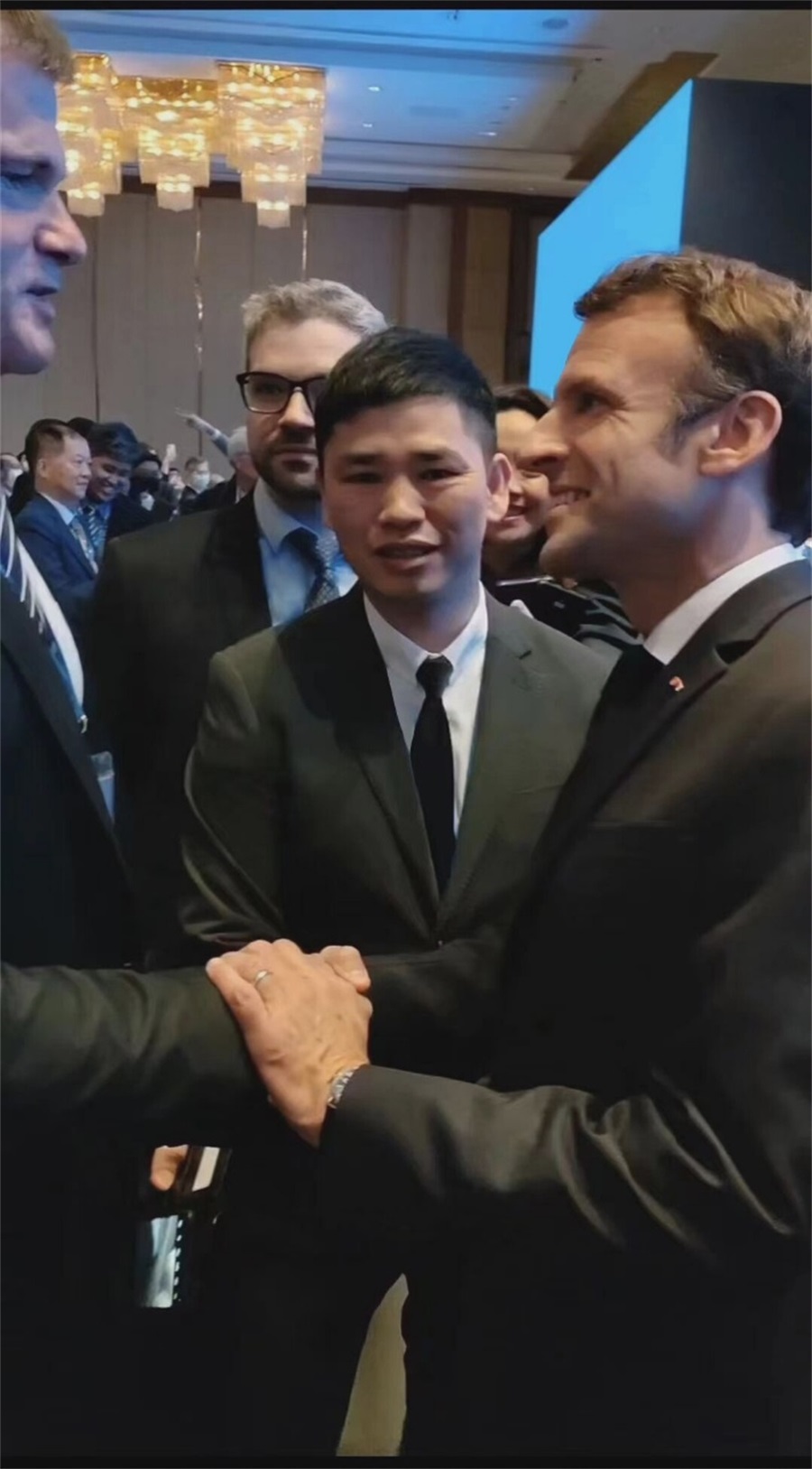 薛錦山與法國總統(tǒng)馬克龍合影留念