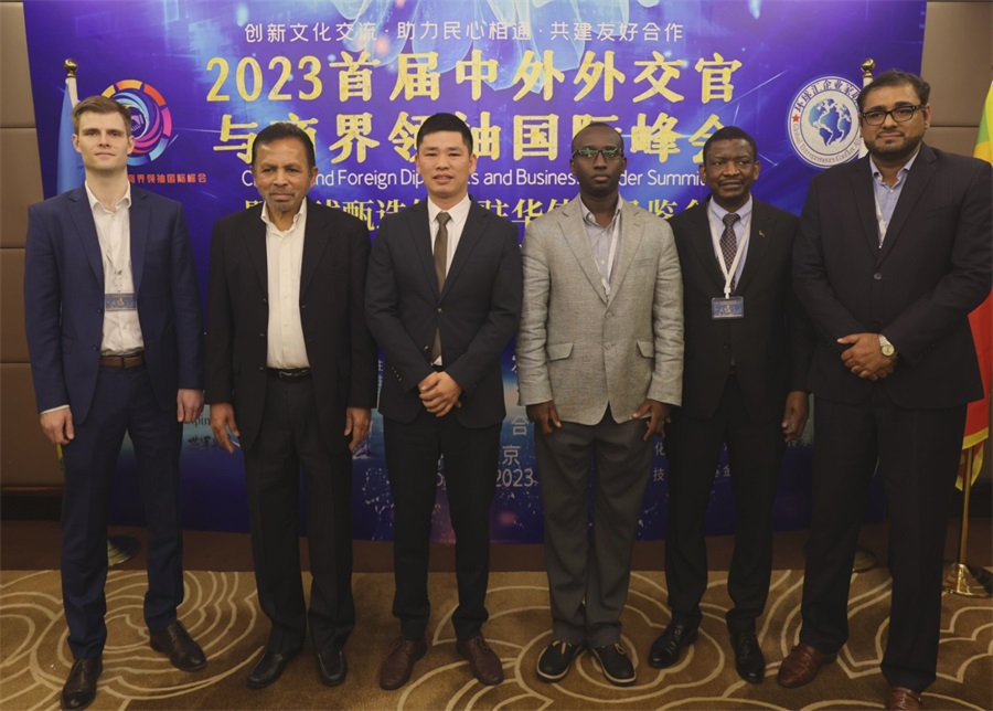 薛錦山與出席峰會的各國駐華外交官合影留念